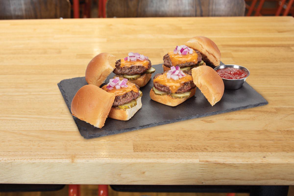 Our Mini Burger Bar is mighty with flavor! Select your choices of Beef, Turkey or Impossible™ proteins. Then sit back and relax while we complete your burger bar with mini hawaiian buns and all the toppings – american and cheddar cheeses, lettuce, tomato, diced red onions, pickles, garlic aioli, hickory bbq, mayo, mustard and ketchup. When ordering for your guests, each person will receive 3 mini burgers of their protein choice. Protein selections must be increments of 1 (3 mini burgers). Minimum order of 10 (30 mini burgers). Calories per serving: Cheese 45-60 cal/Toppings 0-5 cal/Sauces 30-200 cal Looking for a customized catering package? Contact your local restaurant for additional catering options.