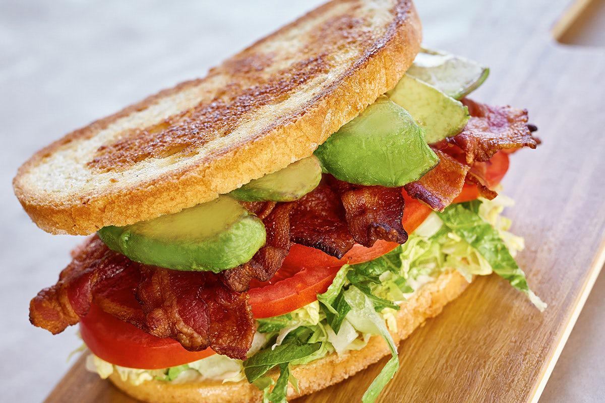 applewood smoked bacon • lettuce blend • tomatoes • avocado • garlic aioli • griddled sourdough